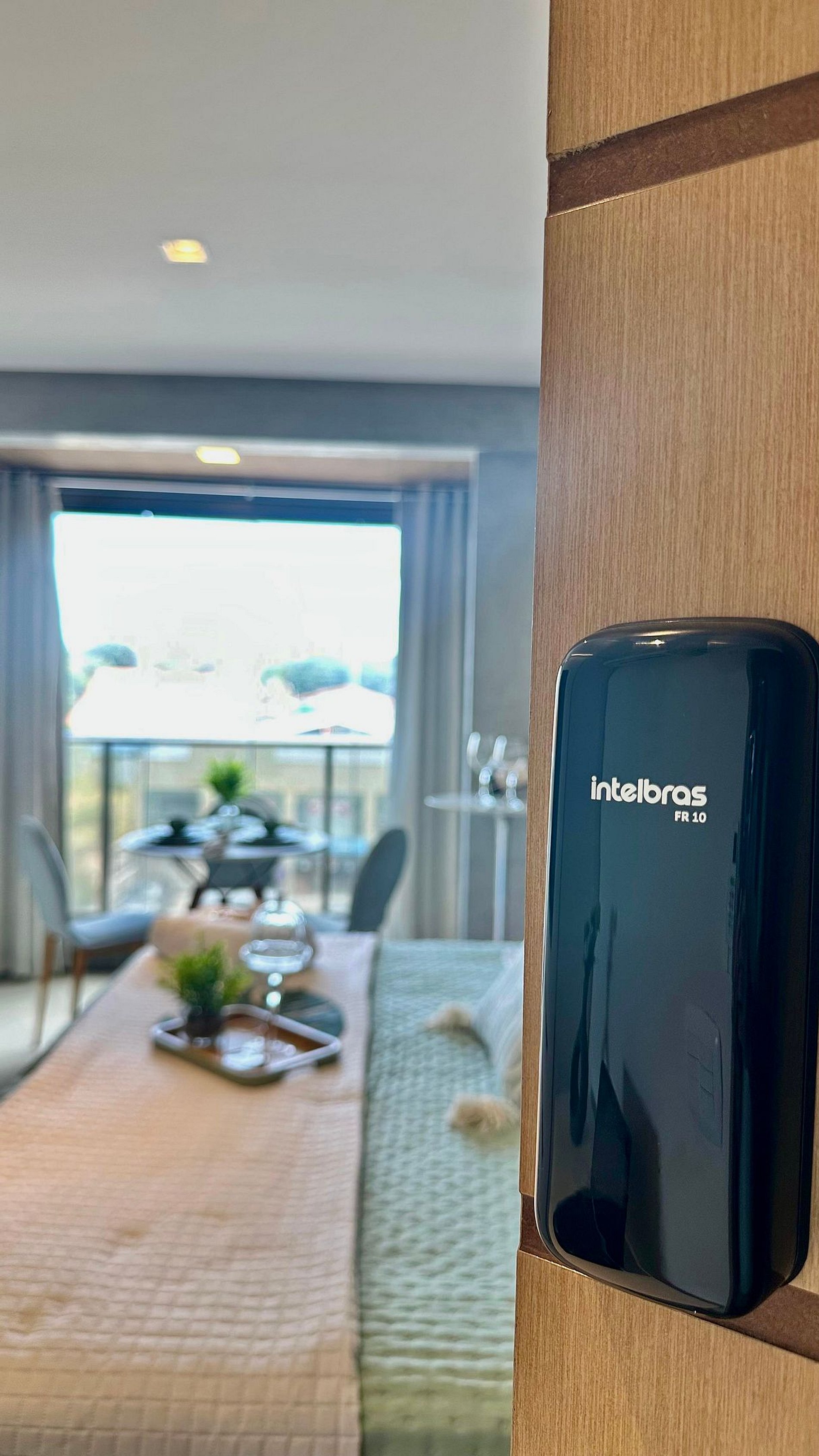 No dia do check-in, basta interfonar e se identificar para ser feito seu cadastro da facial, localizada logo na entrada do prédio, sem necessidade de escadas.