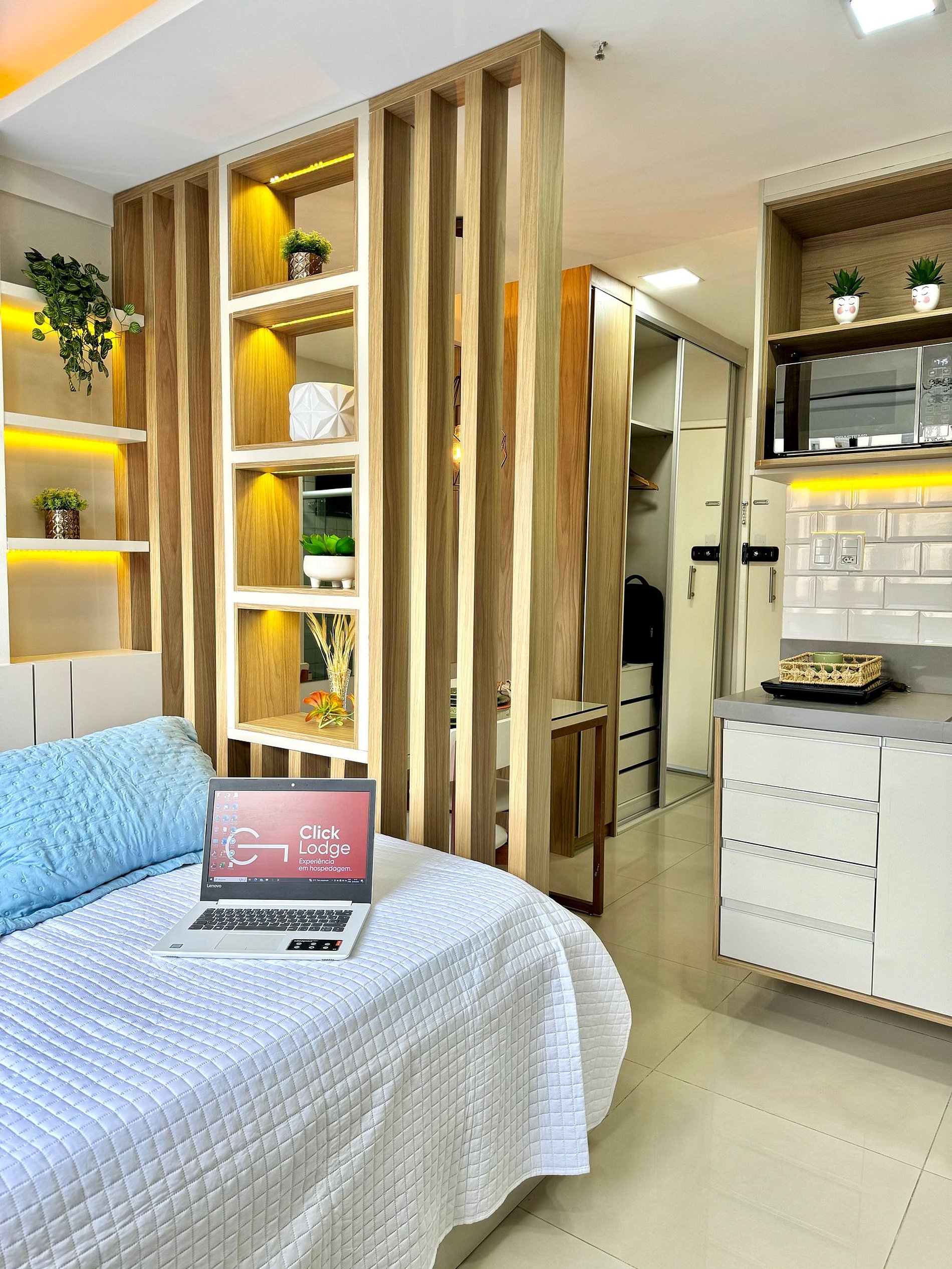 Este aconchegante apartamento de 22 m² foi pensado para oferecer o máximo de conforto em um espaço compacto e funcional. Com capacidade para até 3 pessoas, possui cama de casal padrão e bicama de solteiro retrátil, perfeitas para garantir uma boa noite de descanso. Localizado em uma excelente região, o apartamento é todo reformado, com atmosfera moderna, design funcional, iluminação em LED e rebaixamento de gesso, proporcionando um ambiente acolhedor e elegante. Estilo studio: sala/quarto integrados à cozinha compacta e um banheiro privativo. Estrutura completa: geladeira, fogão de indução (1 boca), utensílios de cozinha e mesa para duas pessoas.