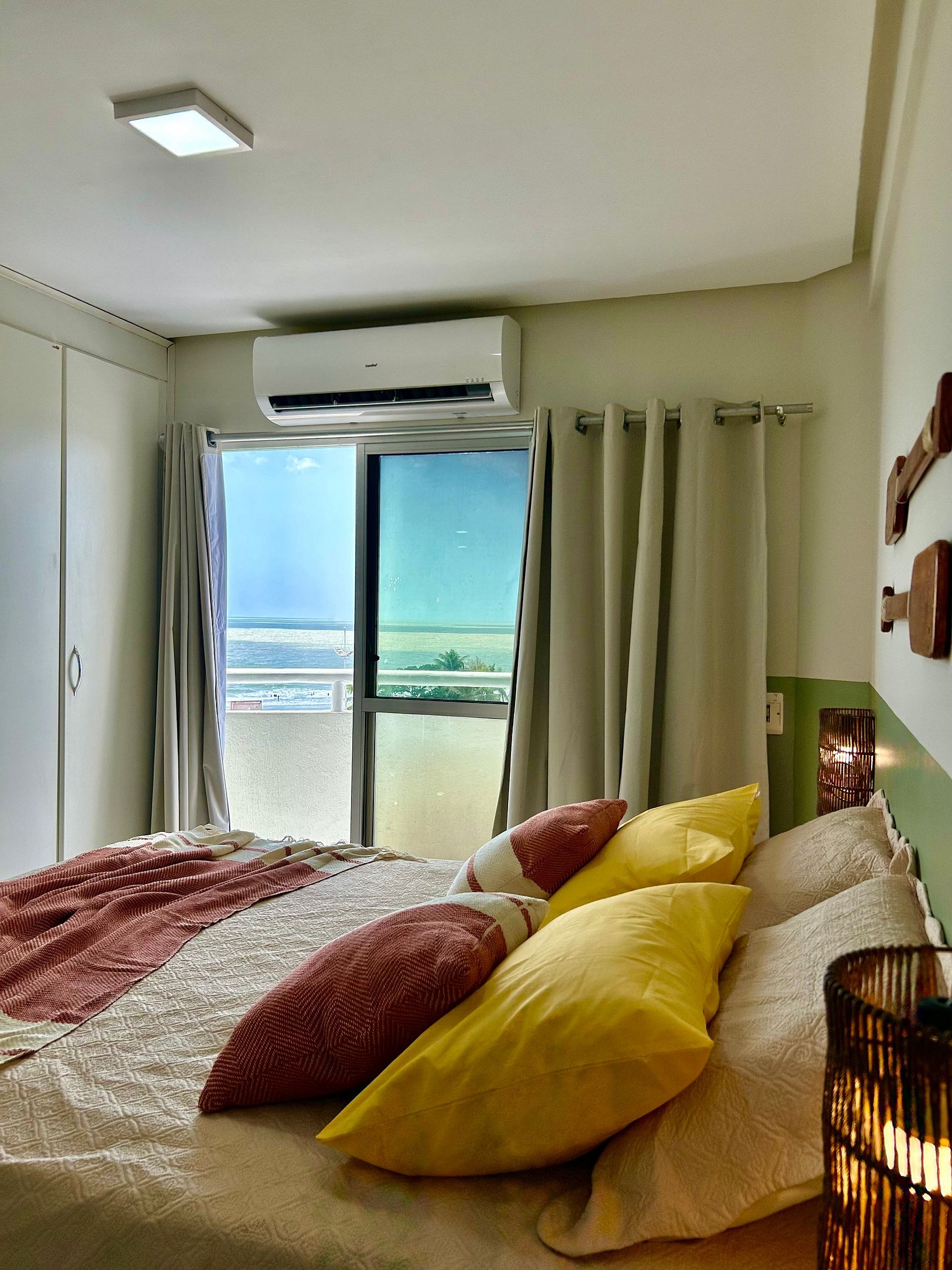 Apartamento com linda vista para o mar, recém-reformado e com design rústico-praiano. Localizado em área privilegiada de São Luís, a poucos minutos da praia da Litorânea. Oferece cama queen, colchões extras, mesa de trabalho, Wi-Fi de 300Mb, TV Smart 49”, ar-condicionado, fogão e geladeira. Perfeito para estadias curtas ou longas.