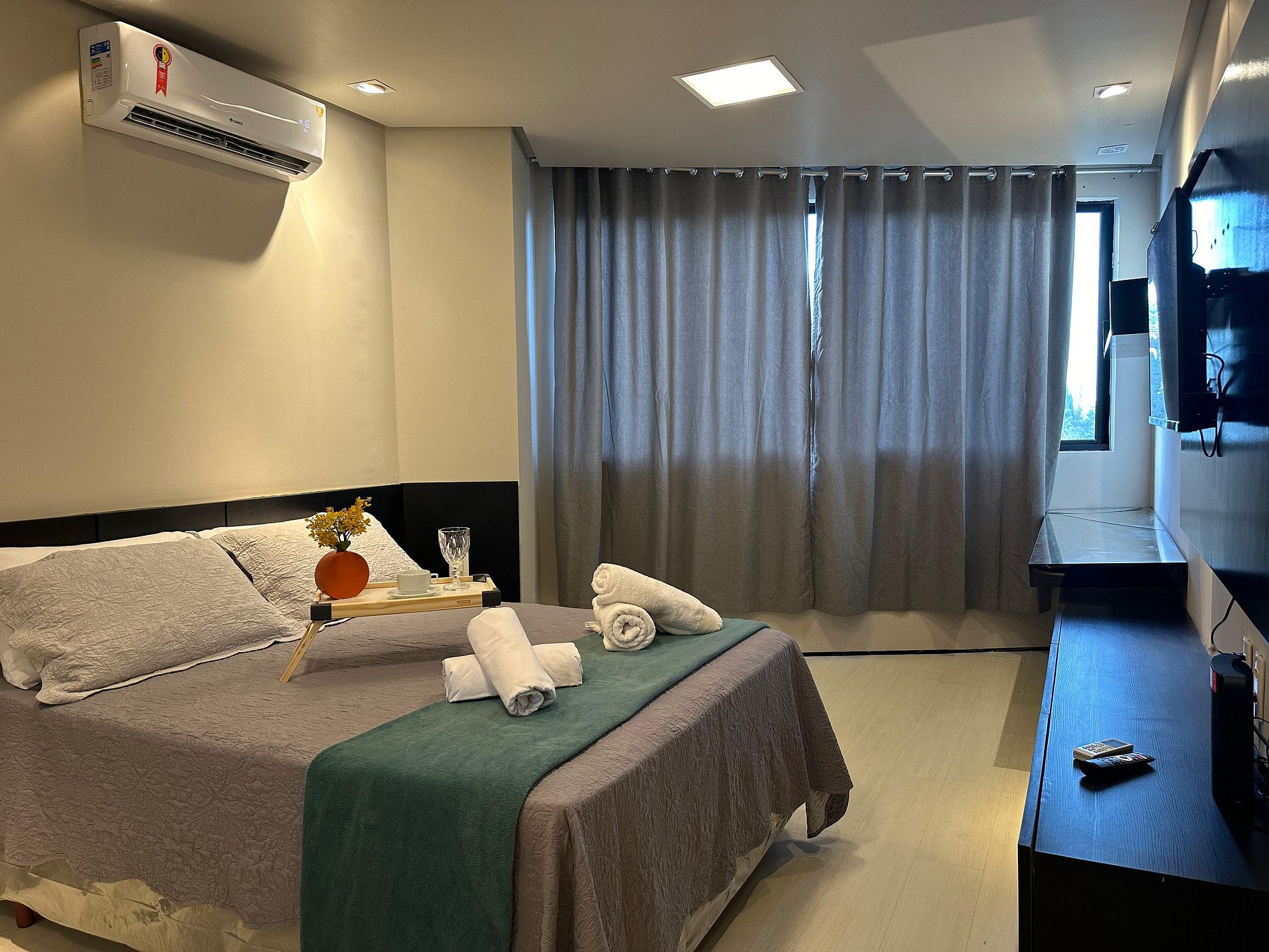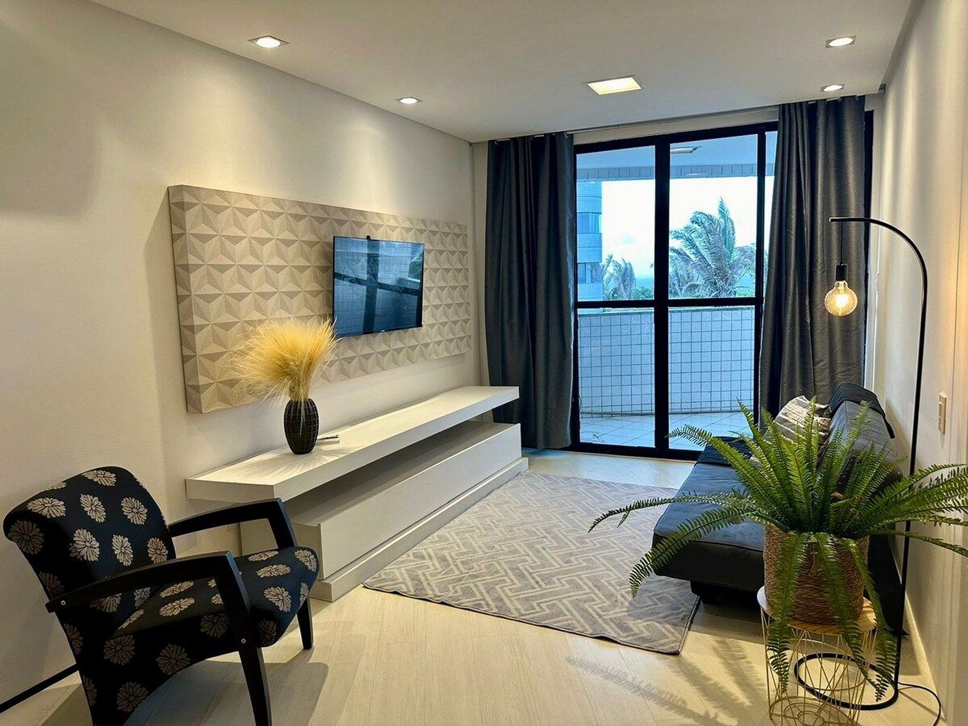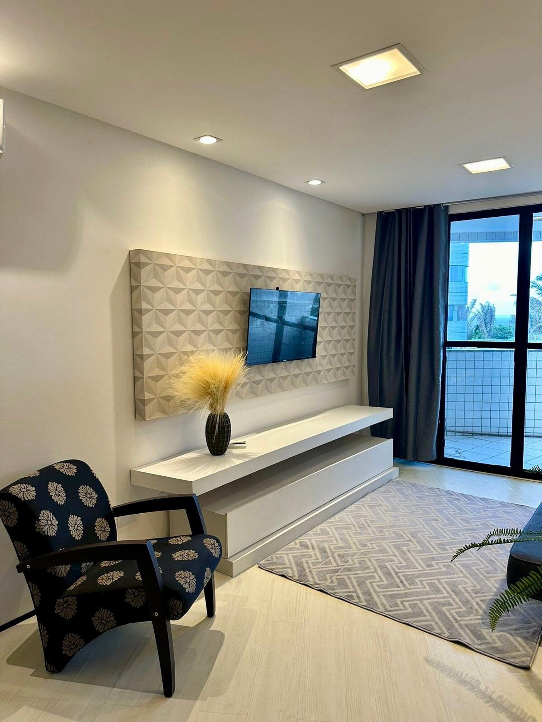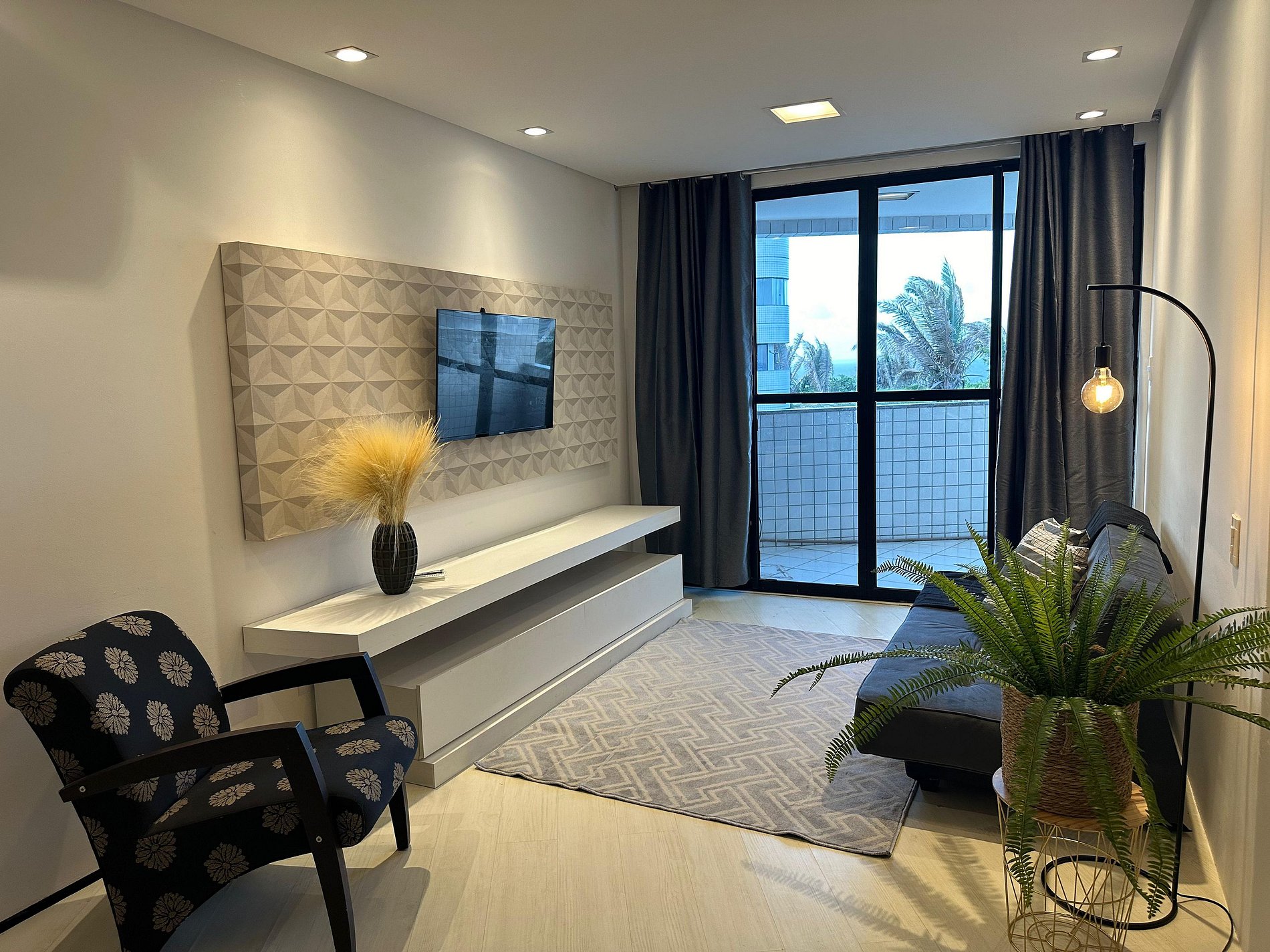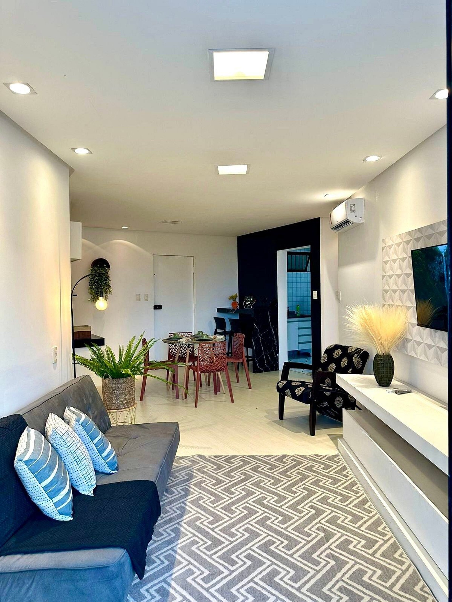 Apartamento moderno, totalmente reformado e com linda vista para a piscina. Localizado em um dos melhores bairros de São Luís, ao lado da Praia da Litorânea. Conta com tudo para uma estadia confortável: cama de casal, cama de solteiro com bicama, sofá-cama, duas Smart TVs, cozinha equipada, Wi-Fi de 400 Mb e dois ar-condicionados.
