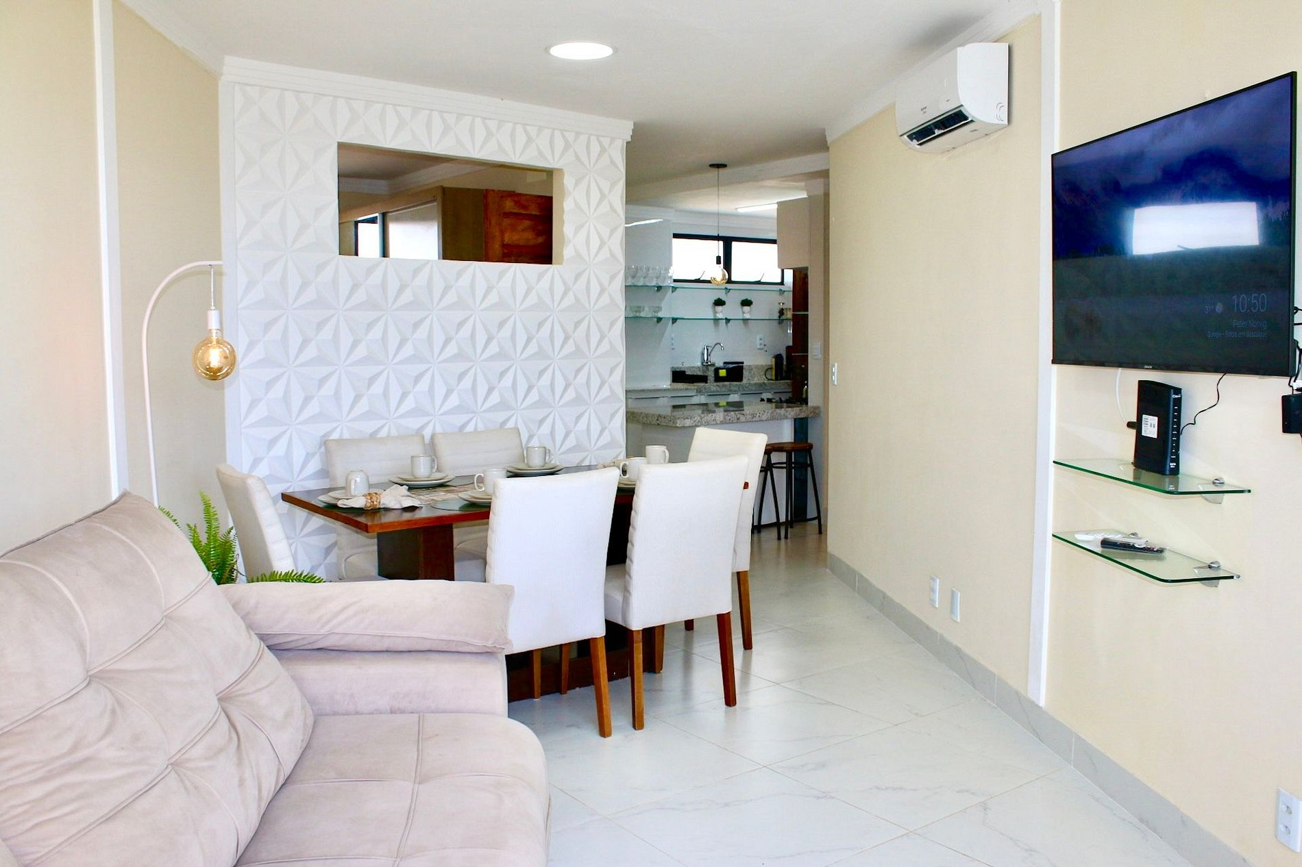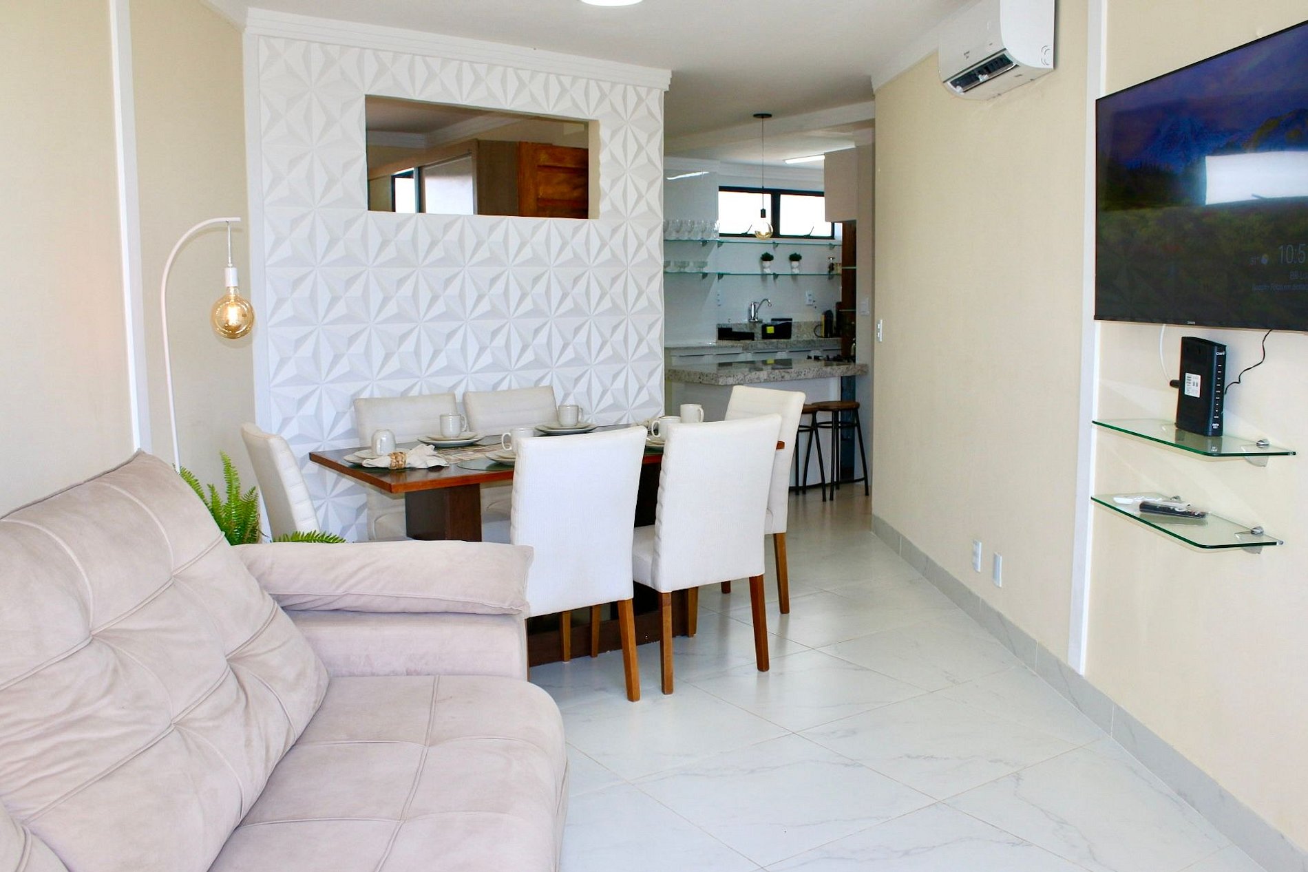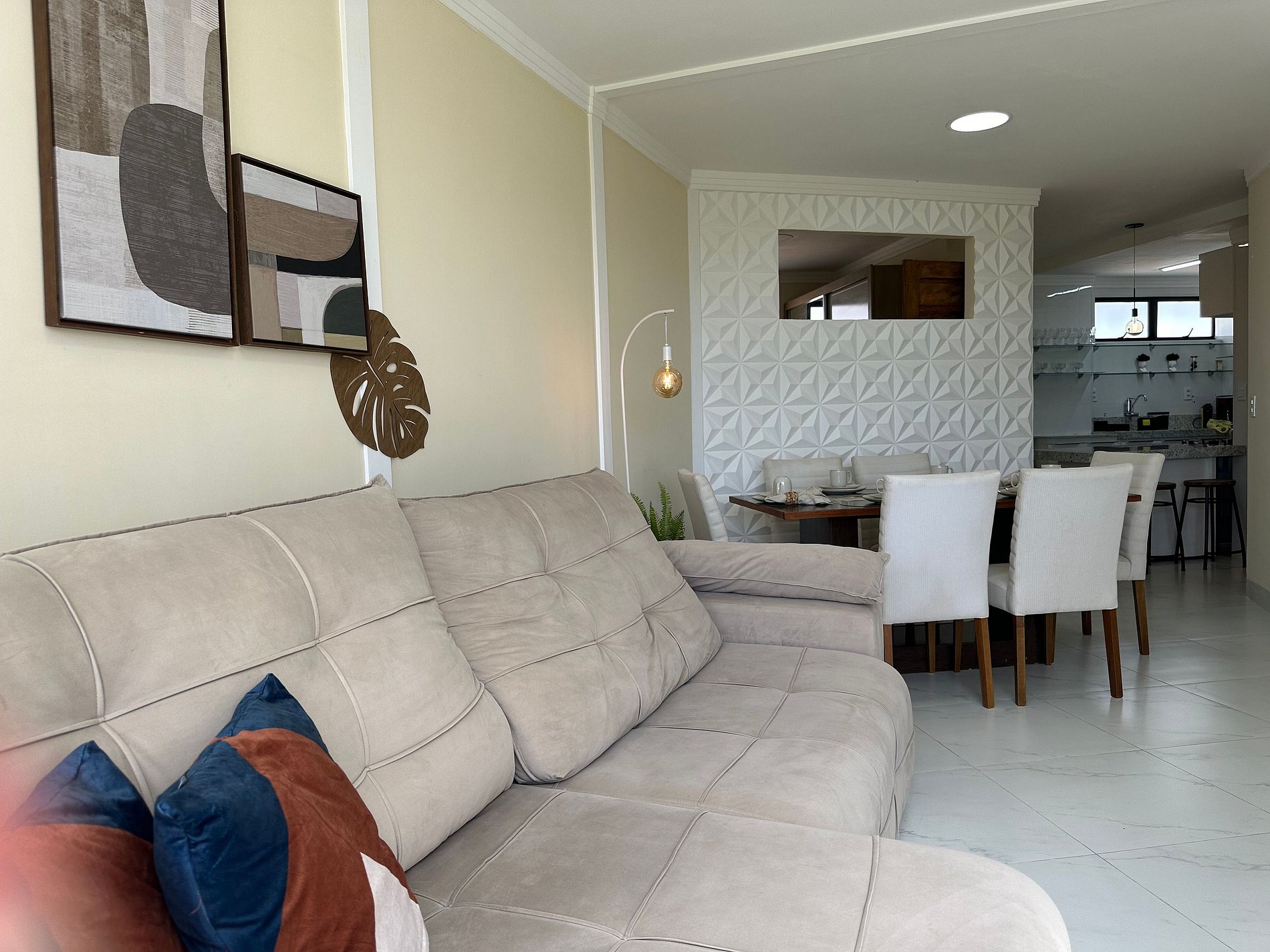 Nossos espaços foram planejados com carinho, repletos de detalhes que garantem conforto e praticidade durante a sua estadia. O apartamento possui 55 m², acomoda até 5 pessoas e une o charme rústico ao estilo moderno, criando uma atmosfera acolhedora com decoração funcional.