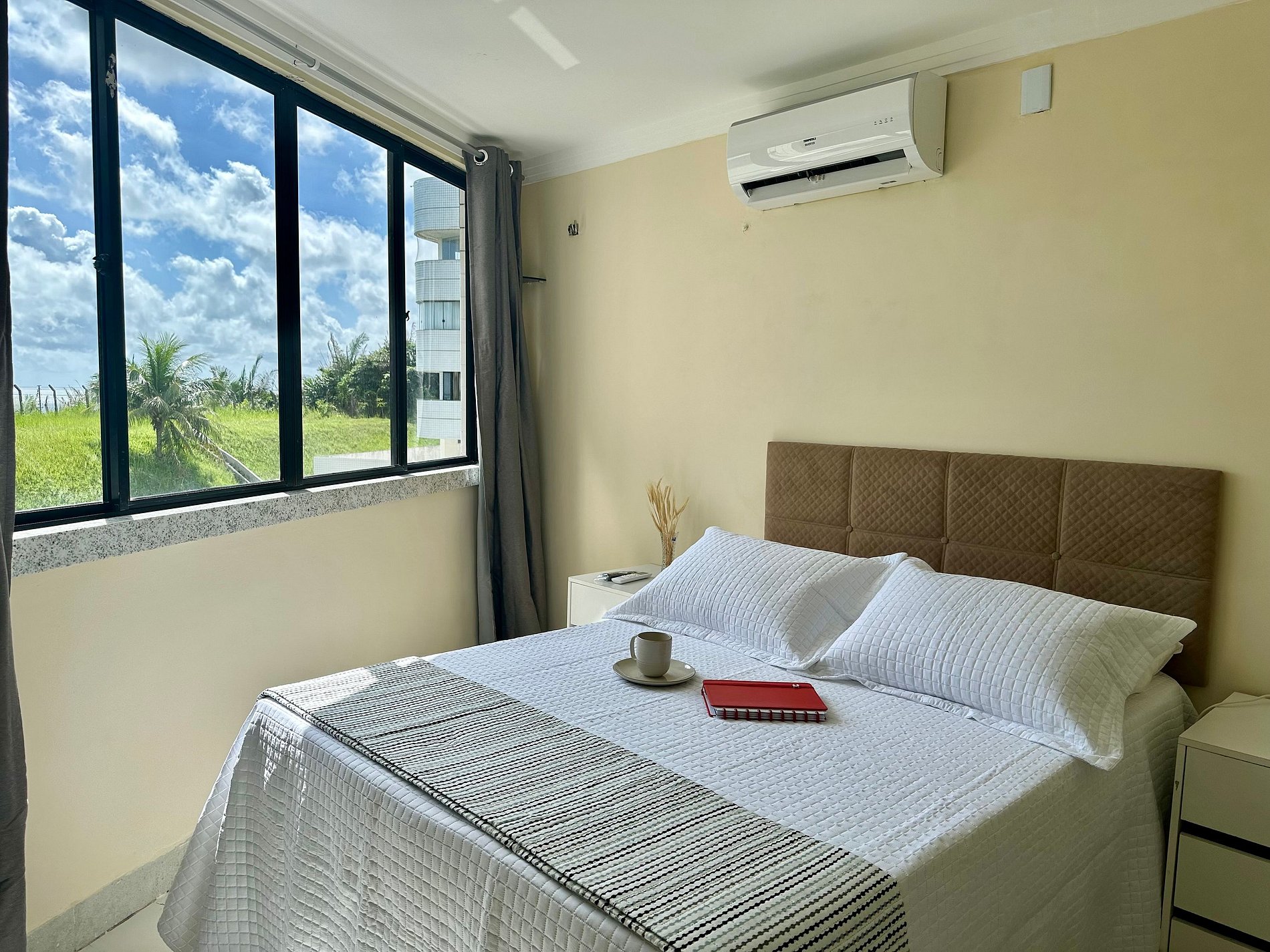 Este espaço é administrado com alto padrão de qualidade, oferecendo vista para a piscina e para o mar. O apartamento foi totalmente reformado e está em um bairro privilegiado de São Luís, junto à Praia da Litorânea. Conta com uma cama de casal, 1 cama de solteiro, sofá, 2 Smart TVs, cozinha equipada, Wi-Fi de 400 Mb, geladeira, ar-condicionado na sala e na suíte. Ideal para estadias curtas ou longas.