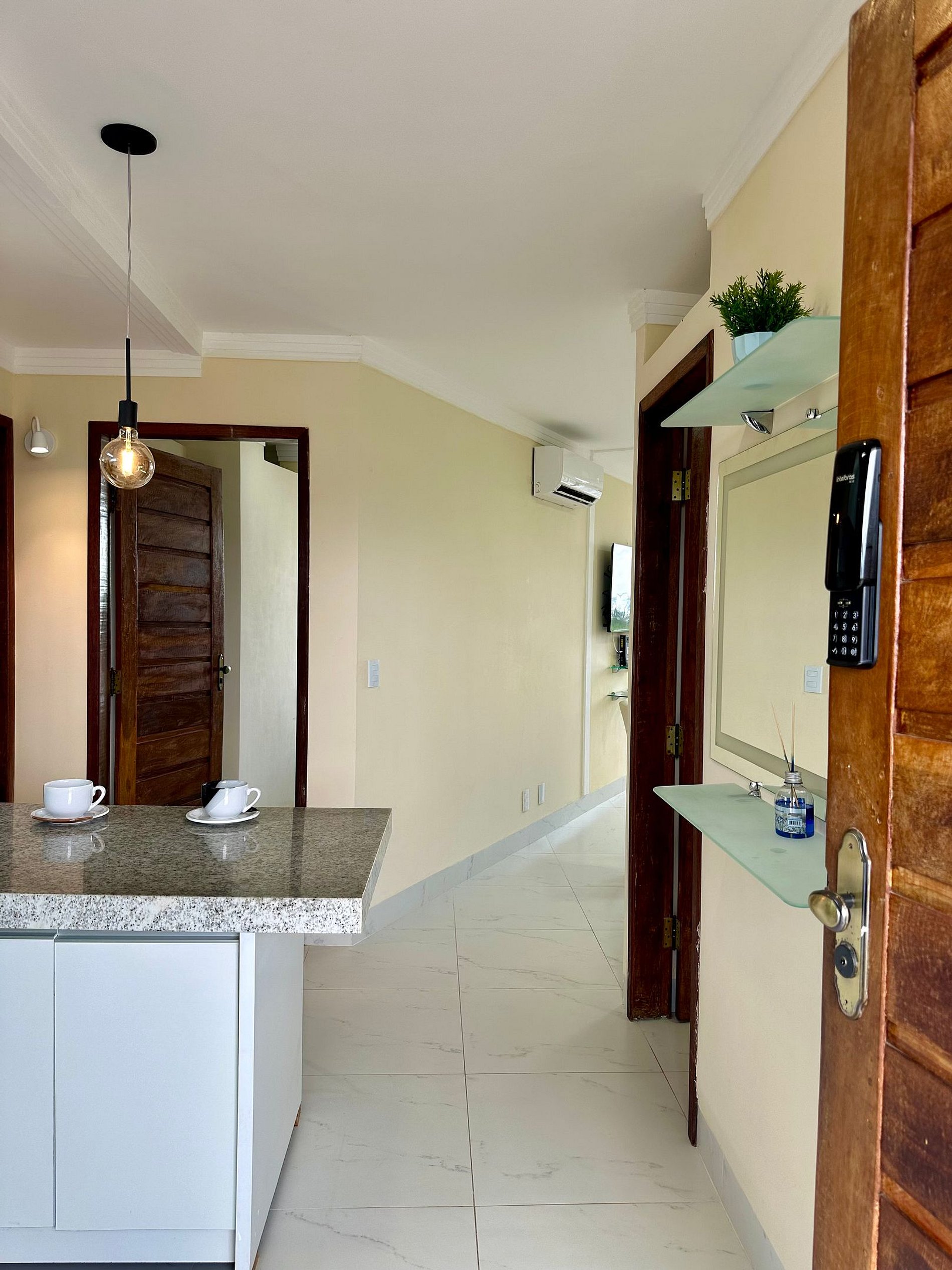 Assim que a reserva for confirmada, o hóspede receberá nosso manual de check-in com todas as orientações. • 24 horas antes da chegada, será enviado um link para realizar o cadastro facial. • No dia do check-in, o hóspede deverá se dirigir à portaria de pedestres, onde há um interfone para validar o cadastro e liberar a entrada por reconhecimento facial. • O acesso ao apartamento é feito pelo elevador, localizado no hall de entrada. • A portaria é remota e funciona 24 horas, garantindo praticidade e segurança. • O apartamento conta com fechadura digital, cujo código de acesso é informado previamente junto ao manual de check-in. Para quem vem de carro: • O condomínio possui um portão de garagem. No primeiro acesso, é necessário se identificar na portaria. • O controle remoto do portão fica disponível dentro do apartamento para uso durante a estadia. • Caso o hóspede chegue de madrugada, receberá previamente o telefone da portaria e poderá ligar para solicitar a abertura do portão. O condomínio ainda oferece uma área de lazer com piscina e espaços verdes, além de duas vagas de garagem exclusivas para uso do hóspede.