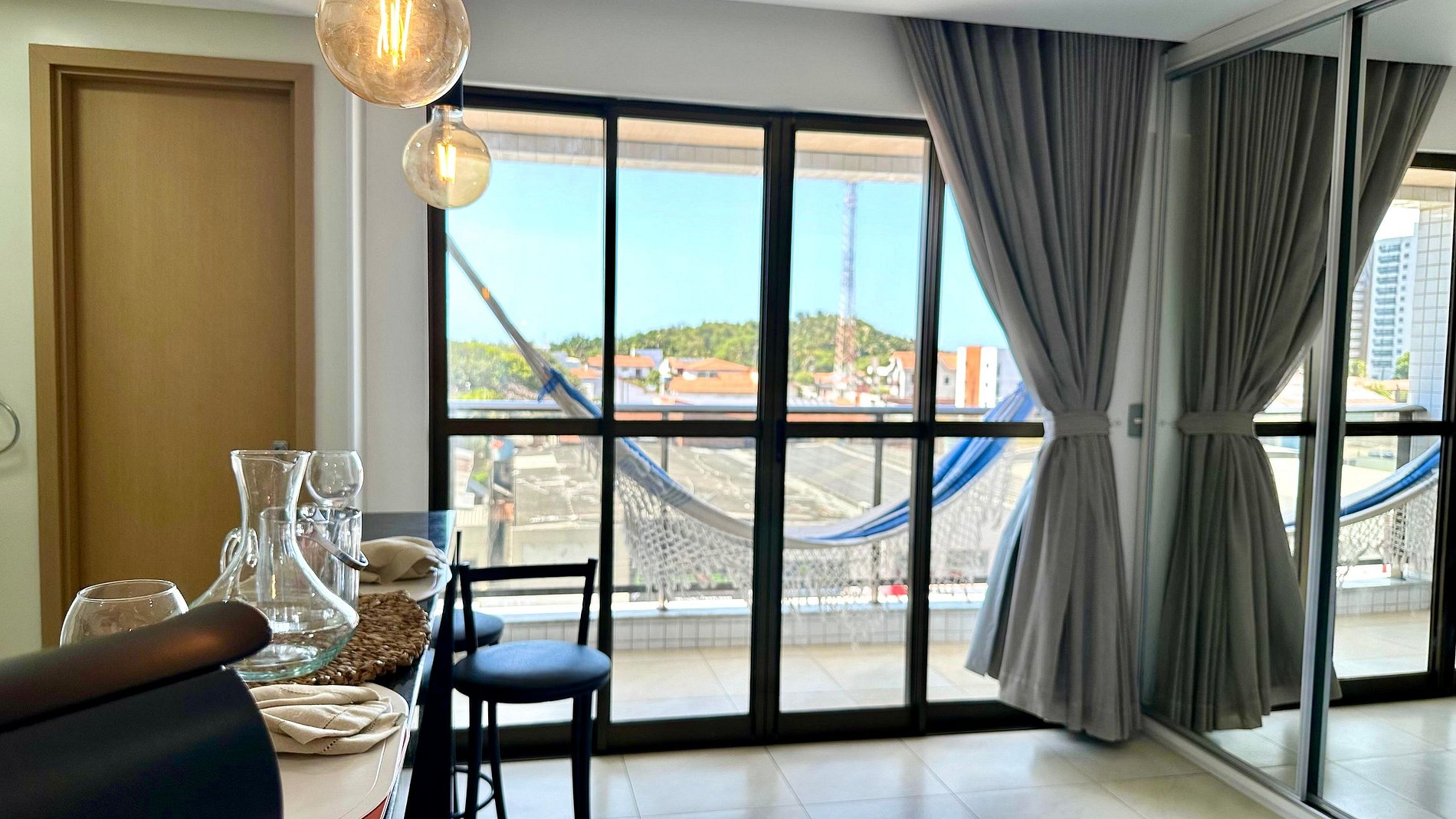 Apartamento modelo estúdio, localizado na Avenida dos Holandeses, no bairro Calhau. Com 30 m², possui varanda com vista para a cidade. O espaço integra quarto e sala com cozinha americana e banheiro privativo. O apartamento comporta até três pessoas e possui fechadura digital na porta. O condomínio oferece área de lazer completa, portaria remota, recepção 24 h com porteiro e vaga de garagem. Localização próxima às praias, supermercados e restaurantes. Ideal para estadias curtas ou longas.